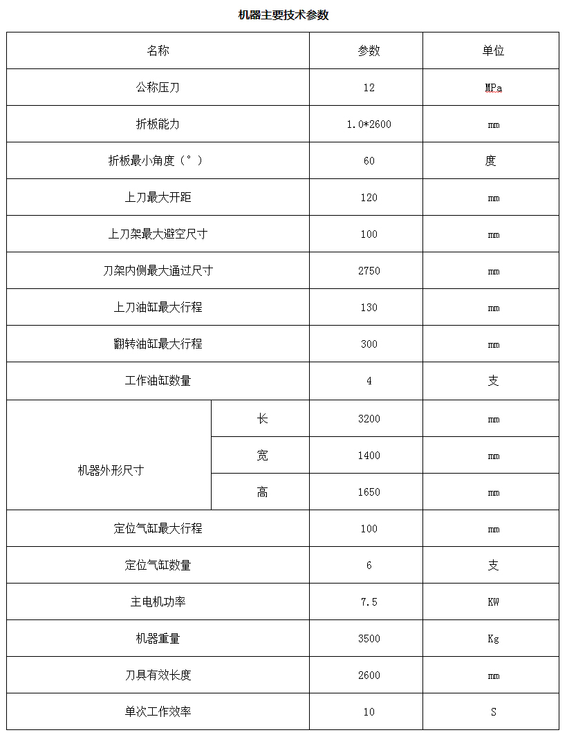 TYZJ-2600 型液壓折邊機的主要性能和特點: